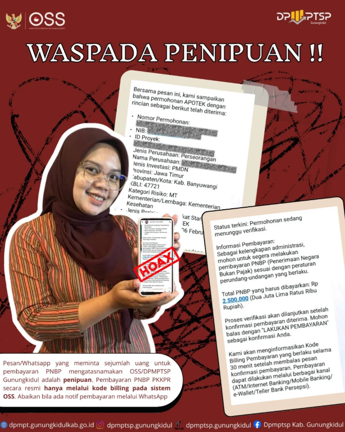 Waspada Modus Penipuan Perizinan, DPMPTSP Gunungkidul Imbau Masyarakat Abaikan Pesan Mencurigakan